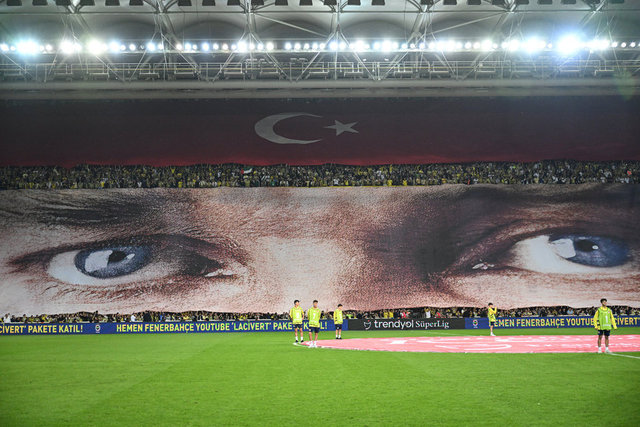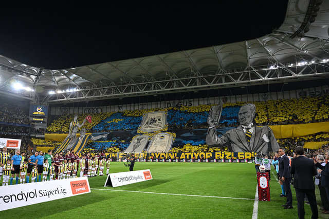 Fenerbahçeli taraftarlar, Trabzonspor maçı öncesinde Cumhuriyet'in 100. yılı için Mustafa Kemal Atatürk'lü bir koreografisi gerçekleştirdi. İşte o muhteşem görüntüler...