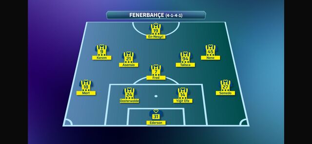 Fenerbahçe: Ederson, Semedo, Yiğit Efe, Oosterwolde, Mert, Fred, Asensio, Talisca, Nene, Kerem, En-Nesyri