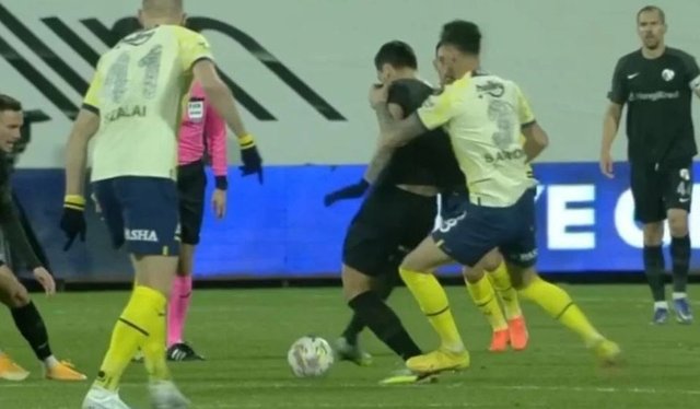 Lale Orta: Penaltı yok. Ümraniyesporlu oyuncunun, Fenerbahçeli oyuncunun boynuna hamlesi var. Penaltı görmedim.