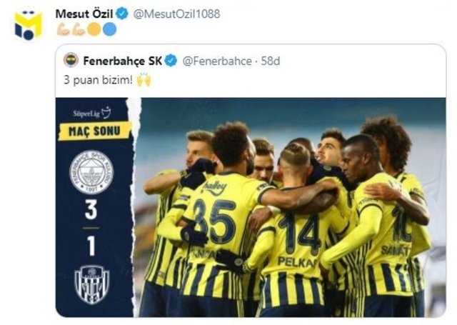 Mesut'un Fenerbahçe atkısıyla Instagram'da paylaşılan fotoğrafı yin 1 milyon 250 bin beğeni alırken 29 bin de yorum yapıldı.
