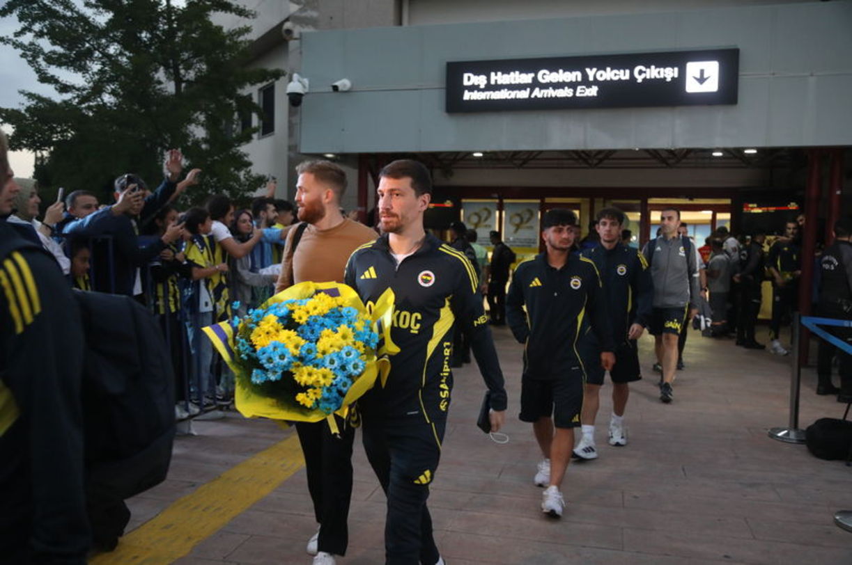 Havalimanında güvenlik şeridinin dışında bekleyen taraftarlar, futbolculara tezahüratlarla eşlik edip çiçek takdim etti. Bazı futbolcular taraftarların uzattığı formaları da imzaladı.