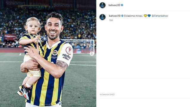 Daha sonra ise İrfan Can Kahveci, oğluyla birlikte Türkiye Kupası finalinin ardından çektirdiği bir fotoğrafı paylaşıp, "Evladıma miras" yazarak Fenerbahçe'yi etiketledi.