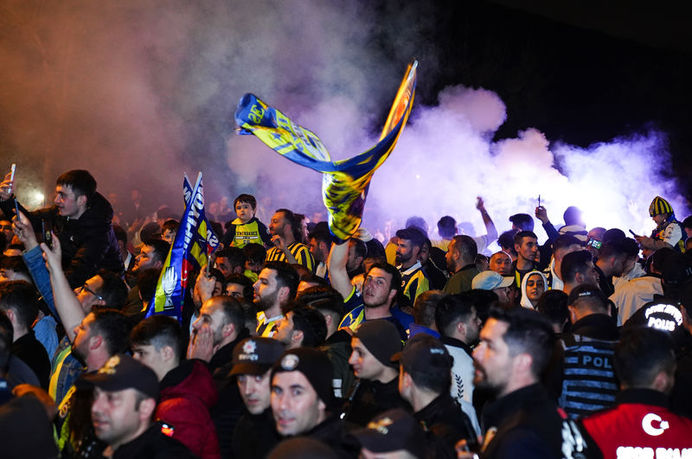 Trendyol Süper Lig'in 37. haftasında Fenerbahçe'nin deplasmanda Galatasaray'ı 1-0 mağlup etmesinin ardından sarı-lacivertli taraftarlar Samandıra'ya akın ederek takımı coşkuyla karşıladı.