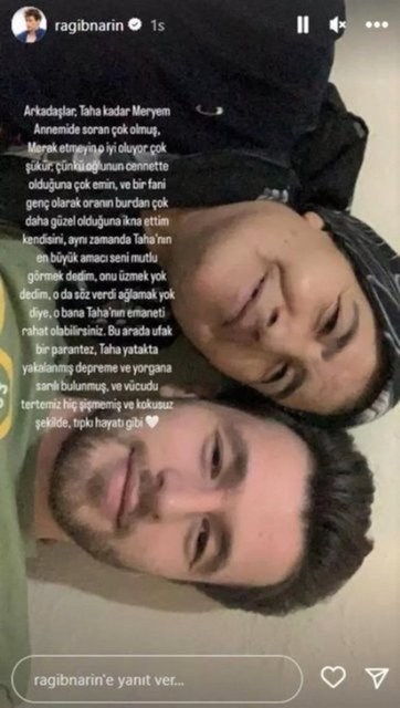 Çektiği yemek videoları ile ünlenen Taha Duymaz, Kahramanmaraş'ta meydana gelen 7.7 ve 7.6 büyüklüğündeki depremler sonrası Hatay'da enkaz altında kalmış ve olaydan 12 gün sonra cansız bedeni çıkarılmıştı. Ragıp Narin, Taha Duymaz'ın annesi Meryem Duymaz ile bir araya geldi. Narin'in açıklamaları sosyal medyada duygusal anlar yaşattı.
