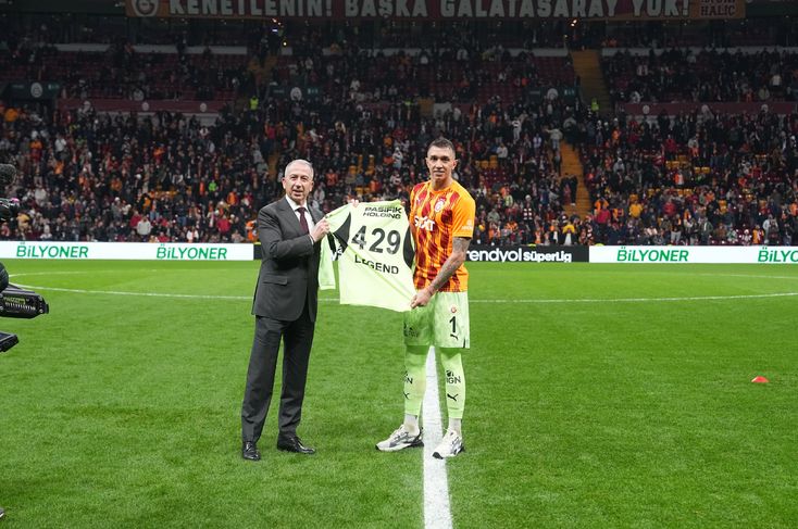 429 maçla Galatasaray tarihinde Süper Lig'de en çok maça çıkan futbolcu olan Fernando Muslera'ya plaket verildi.