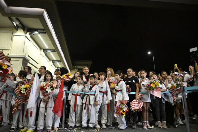THY'nin tarifeli seferiyle Tokyo'dan İstanbul Havalimanı VIP Terminali'ne gelen "Filenin Sultanları", Arnavutköy Belediyesinin minik voleybolcuları ile taraftarlar tarafından Türk bayrakları ve çiçeklerle karşılandı.
