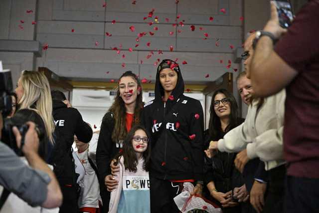 Ay-yıldızlı voleybolcu Gizem Örge ise rüya gibi bir yaz geçirdiklerini dile getirerek, "Gerçekten çok gururluyuz. Milletler Ligi'ne başladığımızdan beri bu başarının sinyallerini veriyorduk. Halkımızın bize inandığı gibi üç kupayla ülkemize döndüğümüz için çok mutluyuz. Hedefimiz artık 2024 Paris Olimpiyatları." diye konuştu.