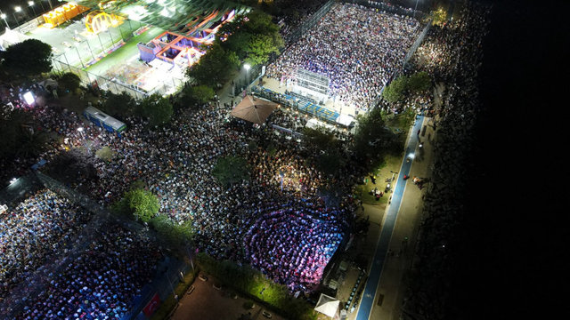 Kalamış Atatürk Parkı'nda şampiyonluk maçını toplu halde izleyenler.