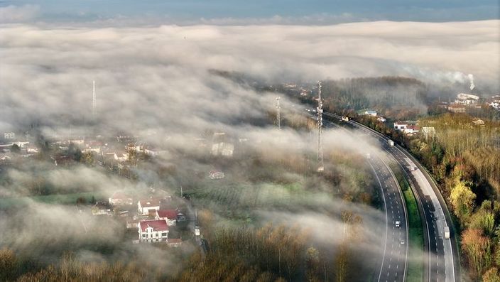 Düzce'de sabah saatlerinde yoğun sis etkili oldu. Ortaya çıkan görüntüler ise adeta film sahnelerine benzetildi.
