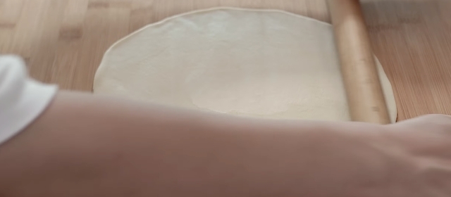 Unlu tezgaha hamurunuzu alın ve yavaşça oklava ile yuvarlak boyutta (yaklaşık 22 santimetre çapında) açın.