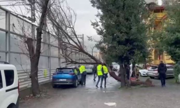 Kadıköy Feneryolu Mahallesi Hüseyin Paşa Çıkmazı Sokak'ta bulunan bir ağaç, fırtınada yerinden söküldü. Ağaç, sokağın kenarından bulunan Marmaray hattındaki elektrik tellerinin üzerine devrildi.