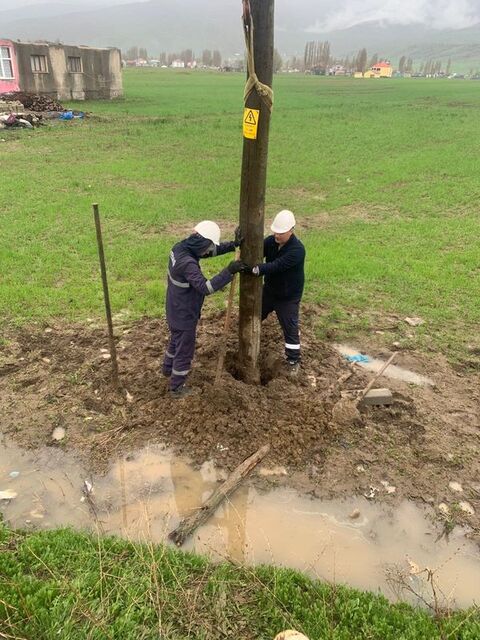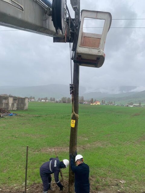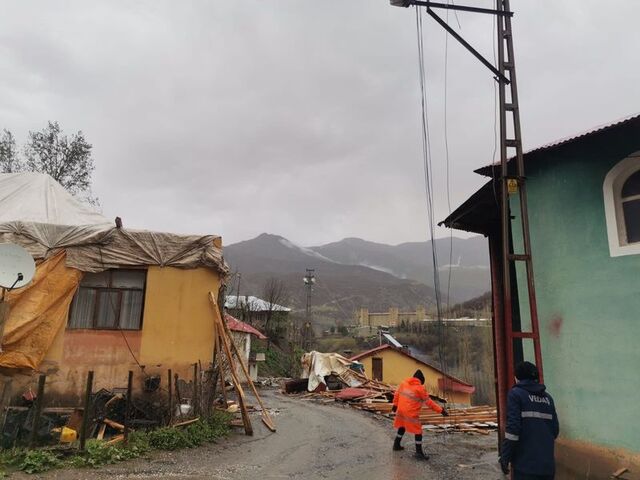 Devrilen direkler ve kopan iletkenler için çalışmalar sürdürülüyor. VEDAŞ yetkilileri de bölge halkını devrilen elektrik direklerdeki iletkenlere temas etmemeleri konusunda uyardı.