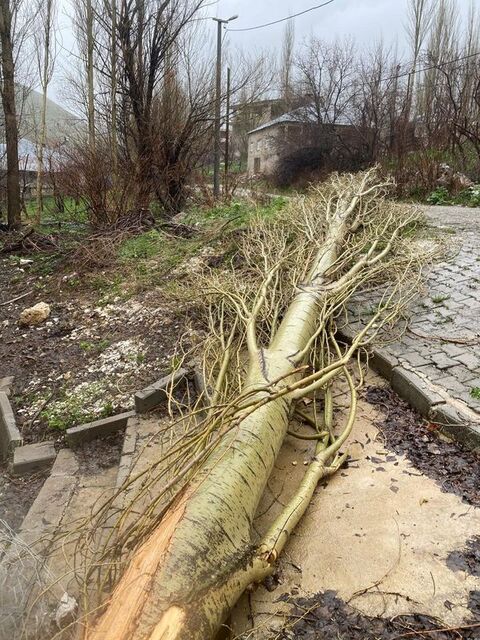 Van, Hakkari ve Muş'ta etkili olan fırtına nedeniyle elektrik direkleri devrildi