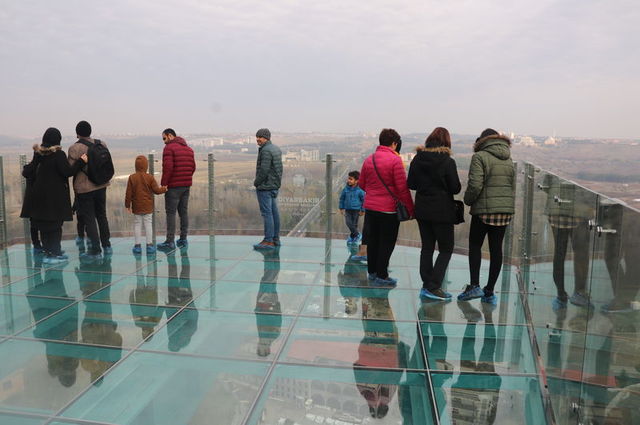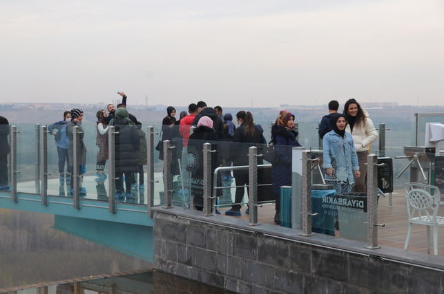 AA'nın haberine göre aynı anda 45 kişinin cam zemine çıkabileceği, bir hafta önce açılışı yapılan terasa, vatandaşlar yoğun ilgi gösteriyor. Diyarbakır'da ilk ve tek olan cam teras, her gün yaklaşık 500 ziyaretçiyi ağırlıyor.
