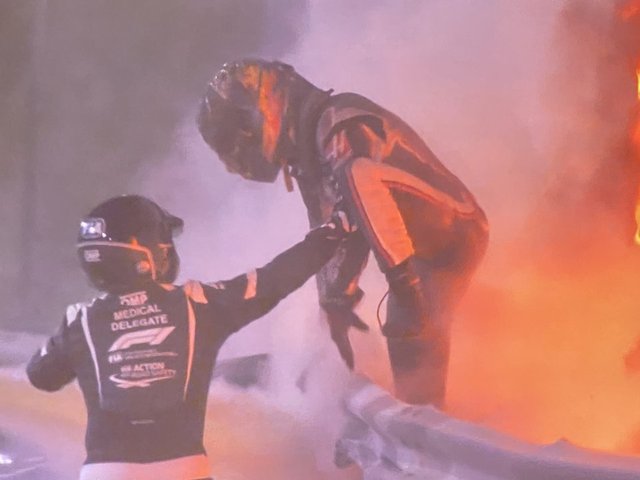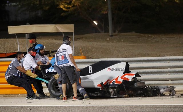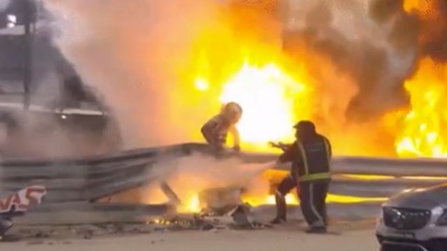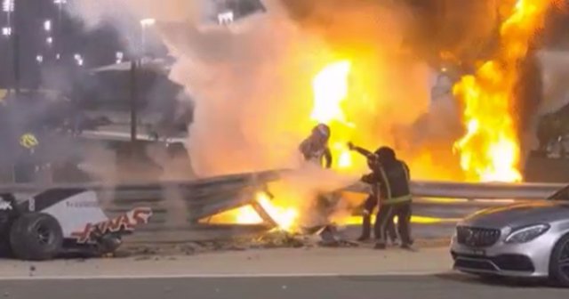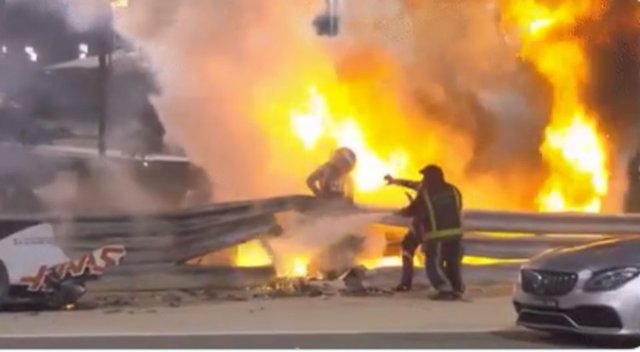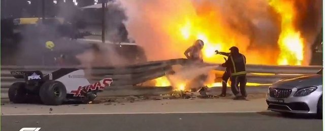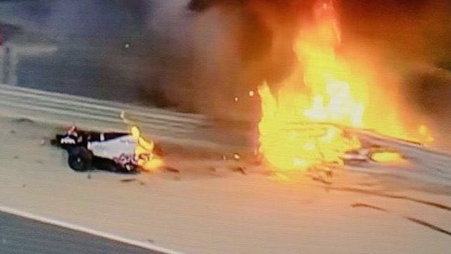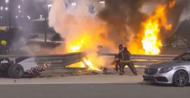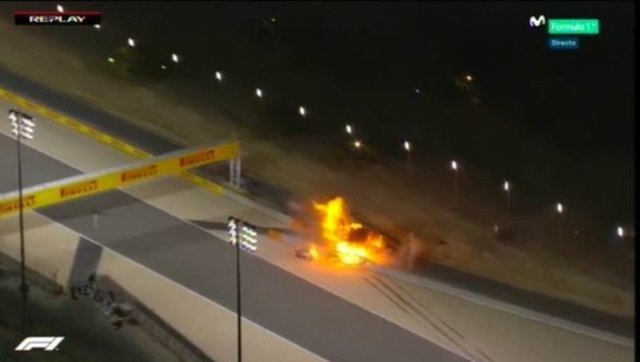 Formula 1 sürücüsü Romain Grosjean, Bahreyn Grand Prix'sinde kaza yaptı ve ölümden döndü! Yarışın ilk turunda aracının kontrolünü kaybederek bariyerlere vuran 34 yaşındaki Fransız sürücünün aracı alevler içinde kaldı. 10 saniyeyi geçkin sürenin ardından aracından çıkabilen Grosjean ambulansa götürüldü