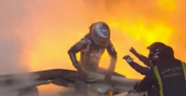 10 saniyeyi geçen bir süre alevlerin sardığı aracın içinde bulunan Grosjean daha sonra çıktı.