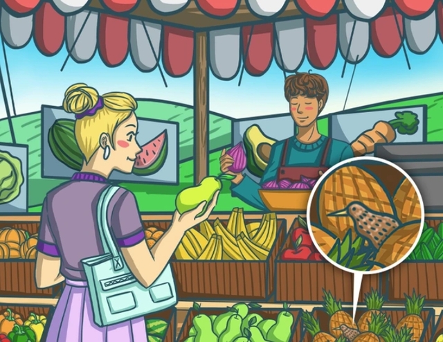 12. Meyve sebze tezgahında saklanan kuşu görebiliyor musunuz?