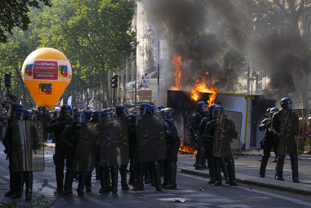 Fransa'da emeklilik yaşını 2 yıl uzatan tartışmalı reforma karşı ülke çapında kitlesel grev ve gösterilerin 14'üncüsü düzenlendi. Binlerce kişinin katıldığı protestolarda 28 kişi gözaltına alındı