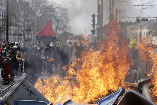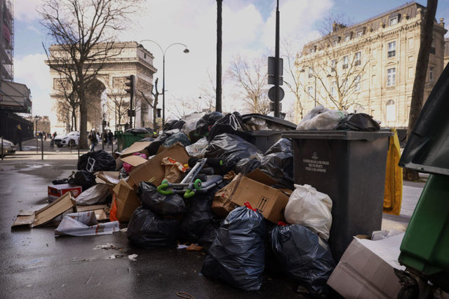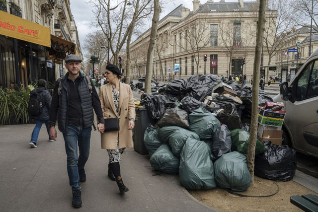 Öte yandan reforma karşı temizlik işçilerinin günlerdir devam eden grevi nedeniyle başkent Paris'in sokaklarında çöp yığınları oluştu.