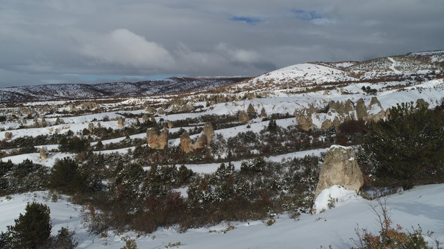 AA'nın haberine göre vadinin önemli bölümünün yer aldığı Afyonkarahisar'ın İhsaniye ilçesindeki Döğer beldesi ile Bayramaliler, Üçlerkayası, Demirli ve Ayazini köylerinde, son günlerde etkili olan kar yağışının ardından 3 bin yıllık Frigya beyaza büründü.