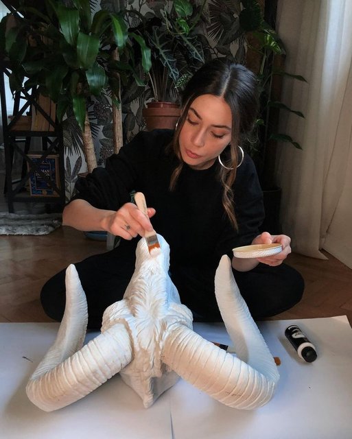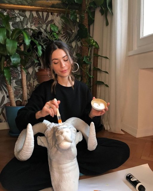 Ünlü oyuncu, önceki gün heykel boyarken çekilen karesini sosyal medya hesabında yayınladı.