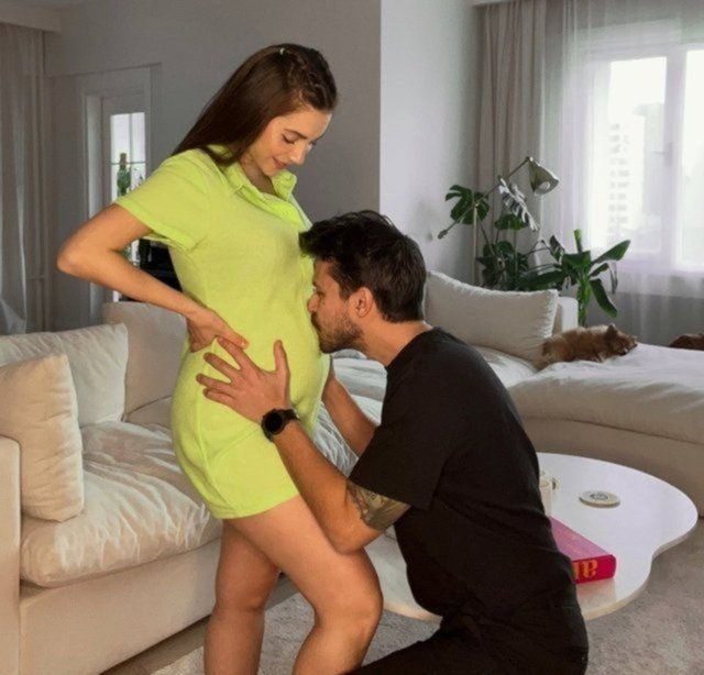 "Ailenin yeni üyesi yükleniyor... Uzun zamandır fotoğraflarımda tek başıma değildim ve bunu sizinle paylaşmak için kendisinin biraz daha büyümesini bekliyordum. Çok mutluyum, çok heyecanlıyım, içimde kalbinin attığını öğrendiğimden beri hayat çok beklenmedik ve çok güzel."