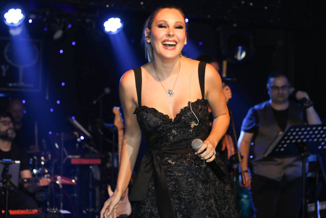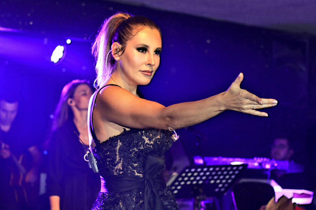 Yaklaşık 2 saat sahnede kalan yorumcu, siyah elbisesiyle göz kamaştırdı.