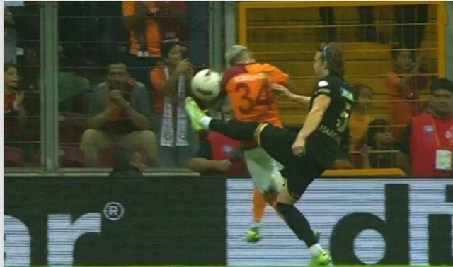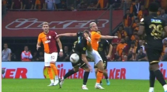 SORU: 55. dakikada Galatasaray'ın ilk golünden önce top taca çıktı, Ankaragücü faul bekledi. Faul var mı?