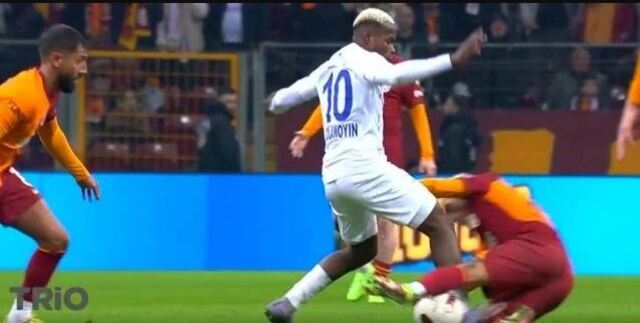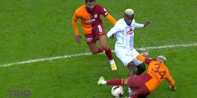 Soru: Galatasaray'ın kazandığı penaltı pozisyonundan önce Zaha'nın Hojer'e faulü var mı?
