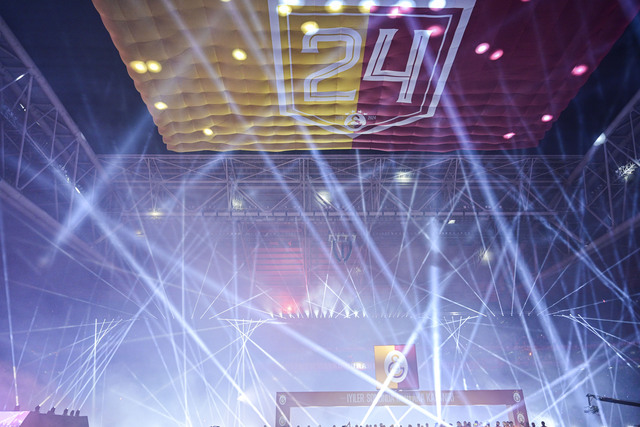 Gösterinin sonunda stadın üzerinde 24. şampiyonluk bayrağı açıldı.