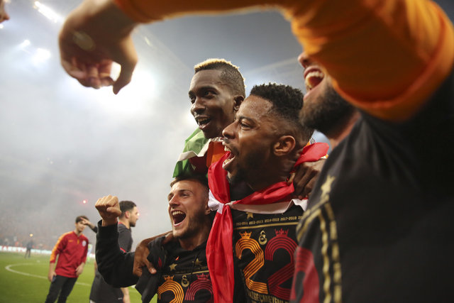 Sarı-kırmızılı ekibin yabancı futbolcuları, kutlama esnasında ülke bayraklarıyla sahada yer aldı. Oyuncular, sahada bol bol fotoğraf çektirirken, tribünleri gezip taraftarların tezahüratlarına eşlik etti.
