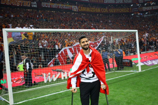 Galatasaray'ın geride kalan hafta Çaykur Rizespor ile oynadığı maçta ağır bir sakatlık geçiren Emre Akbaba, koltuk değnekleriyle kutlamaya dahil oldu. Emre, koltuk değnekleriyle sahada yer alarak, kutlamaya katıldı.