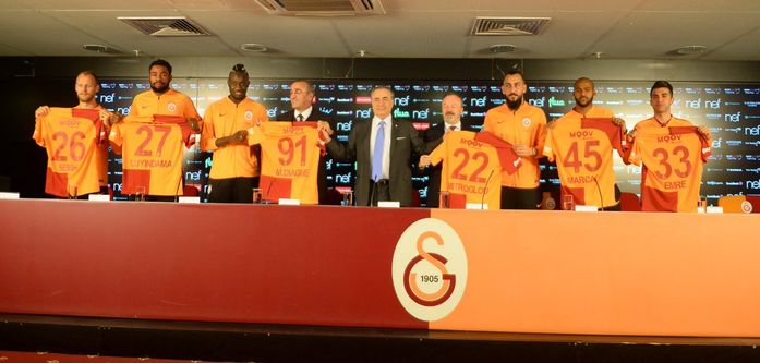 Galatasaray'da devre arasında transfer edilen Mbaye Diagne, Kostas Mitroglou, Christian Luyindama, Marcao, Semih Kaya ve Emre Taşdemir için imza töreni düzenlendi.