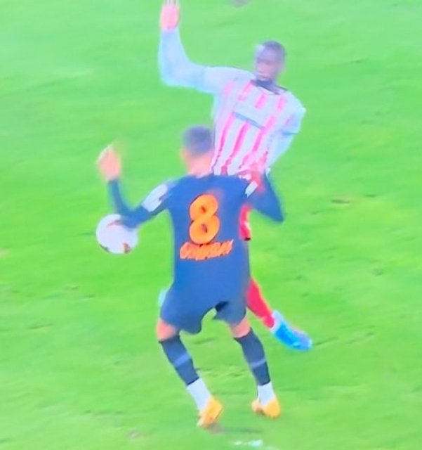 Galatasaraylı futbolcular, bu karara uzun süre itiraz etti. Kerem Aktürkoğlu, itirazları nedeniyle sarı kart gördü. Ardından Kerem, ikinci sarıdan kırmızı kart görerek oyun dışı oldu.