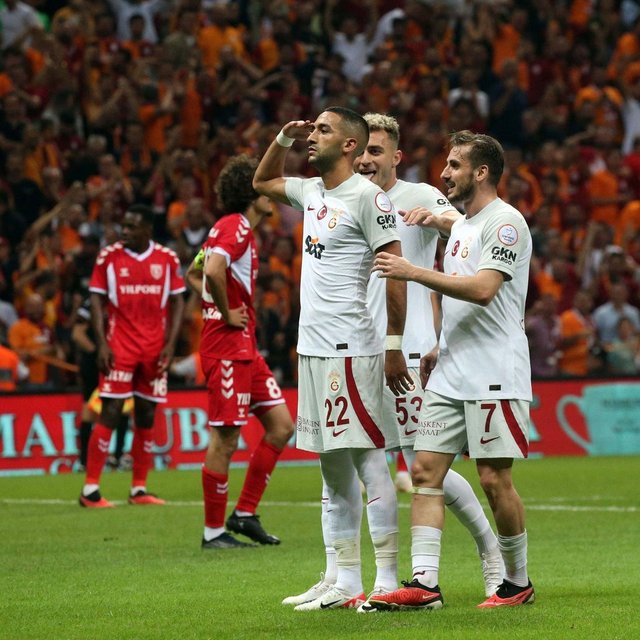Sarı-kırmızılıların diğer 5 golünün 3'ünü Kerem Aktürkoğlu kaydederken, Hakim Ziyech ve Abdülkerim Bardakcı ise birer kez fileleri havalandırdı.