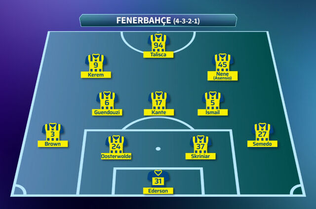 Ederson, Semedo, Skriniar, Oosterwolde, Brown, Guendouzi, Kante, İsmail, Nene (Asensio), Kerem, Talisca