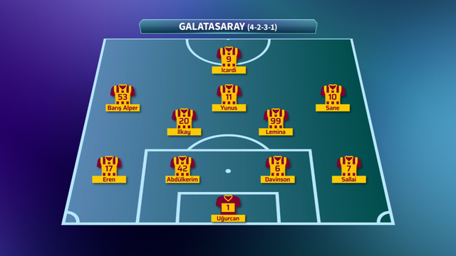 GALATASARAY: Uğurcan, Sallai, Sanchez, Abdülkerim, Eren, Lemina, İlkay, Yunus, Barış, Sane, Icardi