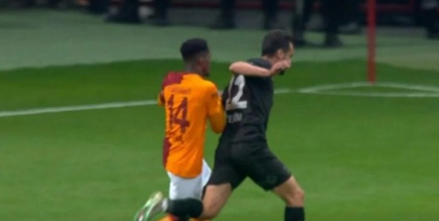 Bahattin Duran: Bence Zaha'nın eliyle yaptığı müdahale yok ama o kadar yakın takip ediyor ki rakibini ayağı, dizi Hataylı oyuncuya çarpıp bozuyor. Pozisyon sonlandıktan sonra düdüğü çalsa daha doğru olurdu.