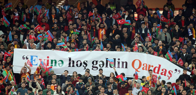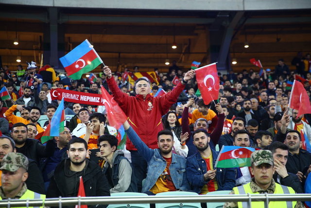 Stadın neredeyse tamamını dolduran futbolseverler maç boyunca ellerinde Türk ve Azerbaycan bayraklarıyla her iki takımı destekledi.