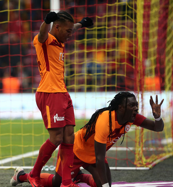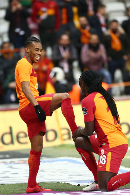 27. haftada Aslan Yürekliler, Bursaspor'u Gomis-Rodrigues ortaklığıyla gole boğdu: 5-0. Evinde üst üste 7. maçını kazanan Terim'in öğrencileri zirveyi yeniden ele geçirdi. Gecenin adamı ise 1 gol atıp 2 asist yapan Rodrigues oluyordu... Gomis, ikinci gol pası sonrası takım arkadaşının kramponlarını parlattı.