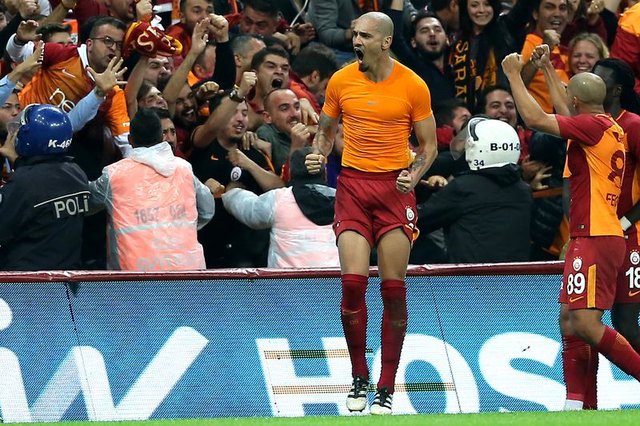 Başakşehir maçında stada gelirken oyuncuların dinlediği ve camlara vurarak tempo tuttuğu şarkı, derbiden önce de stat hoparlöründen çalındı. Terim’in “Kanı kaynatıyor” dediği şarkının hakkını veren Aslan, bir virajı daha kayıpsız atlatıp şampiyonluğa göz kırpıyordu...