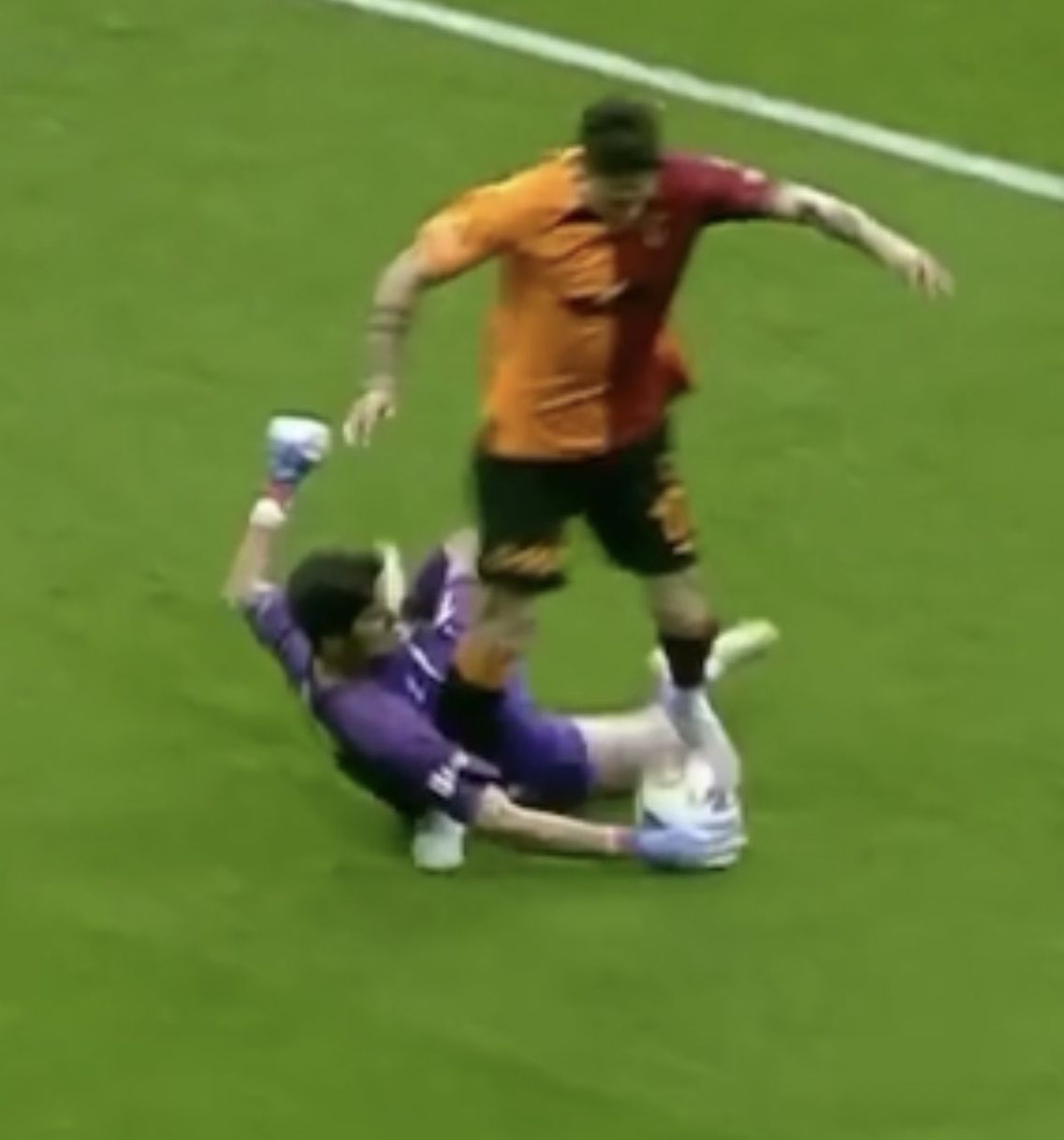 Kaleci Batuhan ile karşı karşıya kalan Nicolo Zaniolo yerde kaldı. Zaniolo, düşmesine karşın tekrar ayağa kalkarak golü atmaya çalıştı ancak top auta gitti. Pozisyonun ardından Zaniolo, penaltı beklentisiyle hakeme baktı ve Galatasaraylı oyuncular penaltı itirazında bulundu.