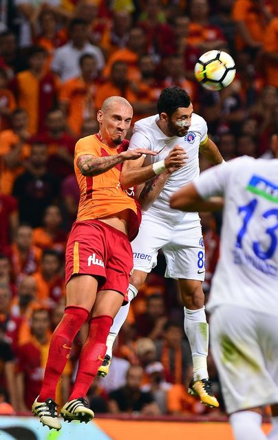 63. dakikada Neumayr'ın ortasında topa Muslera ile birlikte yükselen Rangel'in kafa vuruşunda meşin yuvarlak yandan auta çıktı.