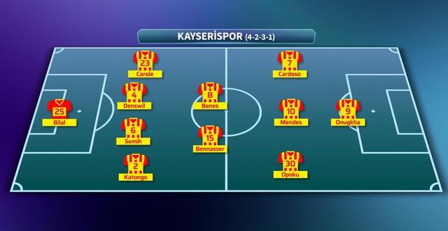 Kayserispor: Bilal, Carola, Denswil, Semih, Katongo, Bennaser, Benes, Cardoso, Mendes, Opoku, Onugkha