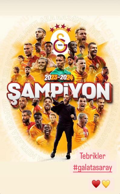 Galatasaray, şampiyon olarak taraftarlarını mutlu etti. Galatasaraylı ünlüler, mutluluklarını paylaştı. Fenerbahçeli Cem Yılmaz, Galatasaraylıları tebrik etti