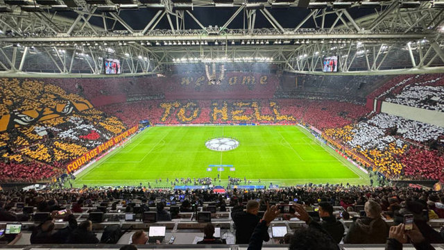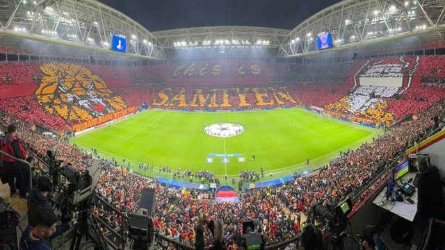 Galatasaray, Şampiyonlar Ligi'nde Manchester United'ı konuk ederken sarı-kırmızılı taraftarlardan dev maça özel koreografi geldi