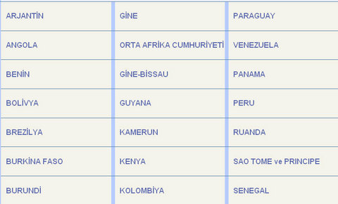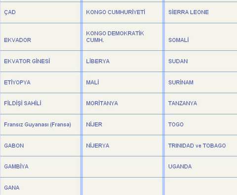 Sarıhumma hastalığının görüldüğü ve ülkeye girişte tüm yolculardan 10 gün önce sarıhumma aşısı ile aşılandığının gösteren uluslararası aşı sertifikası isteyen ülkeler ise bir sonraki resimde -