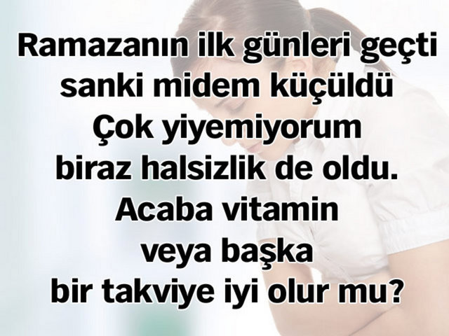 Hiçbir sağlık yakınması olmasa da 1 ay boyunca oruç tutacak kişilerden çok yaşlı olanların, büyüme çağındaki gençlerin, yorgun ve yorucu tempoda çalışanların; yeni doğum yapmış, ameliyattan veya hastalıktan çıkmış, salgın hastalık ortamında bulunan kişilerin tok karnına doğal multivitamin almalarını öneririm.