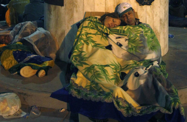 Dün Cobacabana plajına akın eden yüzbinlerce genç geceyi soğuk havaya aldırmadan beyaz kumsallarda yatarak geçirdi