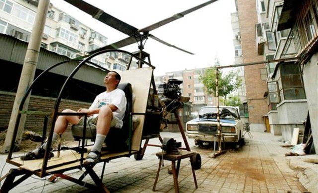 Çinli grafik tasarımcısı Gao Hanjie evinin bahçesinde kendi helikopterini inşa etmek için kolları sıvadı. - Tasarımı ve tüm aksesuarlarıyla kendi helikopterini imal edip, uçan ilk insan unvanını alacak. Çinli grafik tasarımcısının helikopterinin uzunluğu 6 metre.